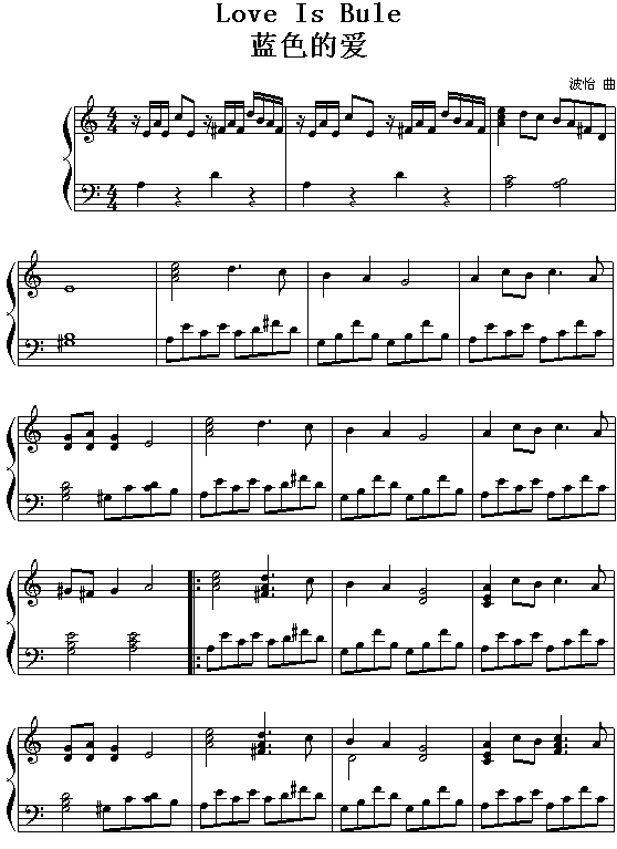 您現在的位置:伴奏音樂>>曲譜下載>>鋼琴曲譜 Love Is Bule 藍色的愛